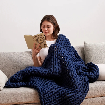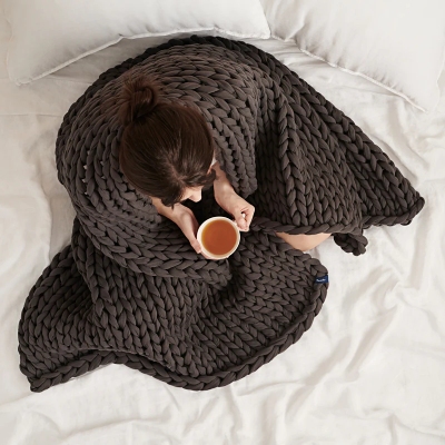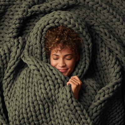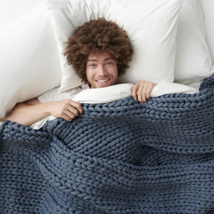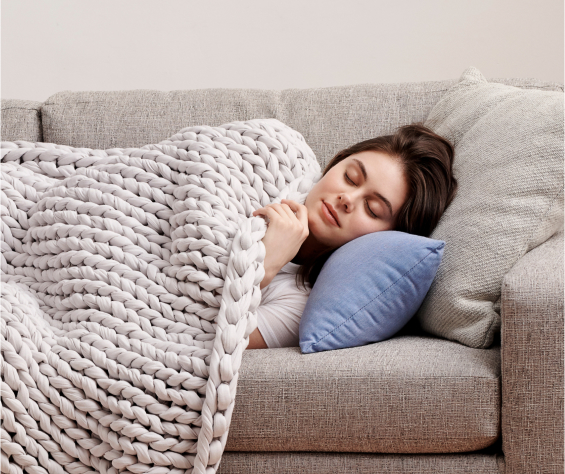 A weighted, knitted blanket to help you sleep better and feel calmer, naturally.